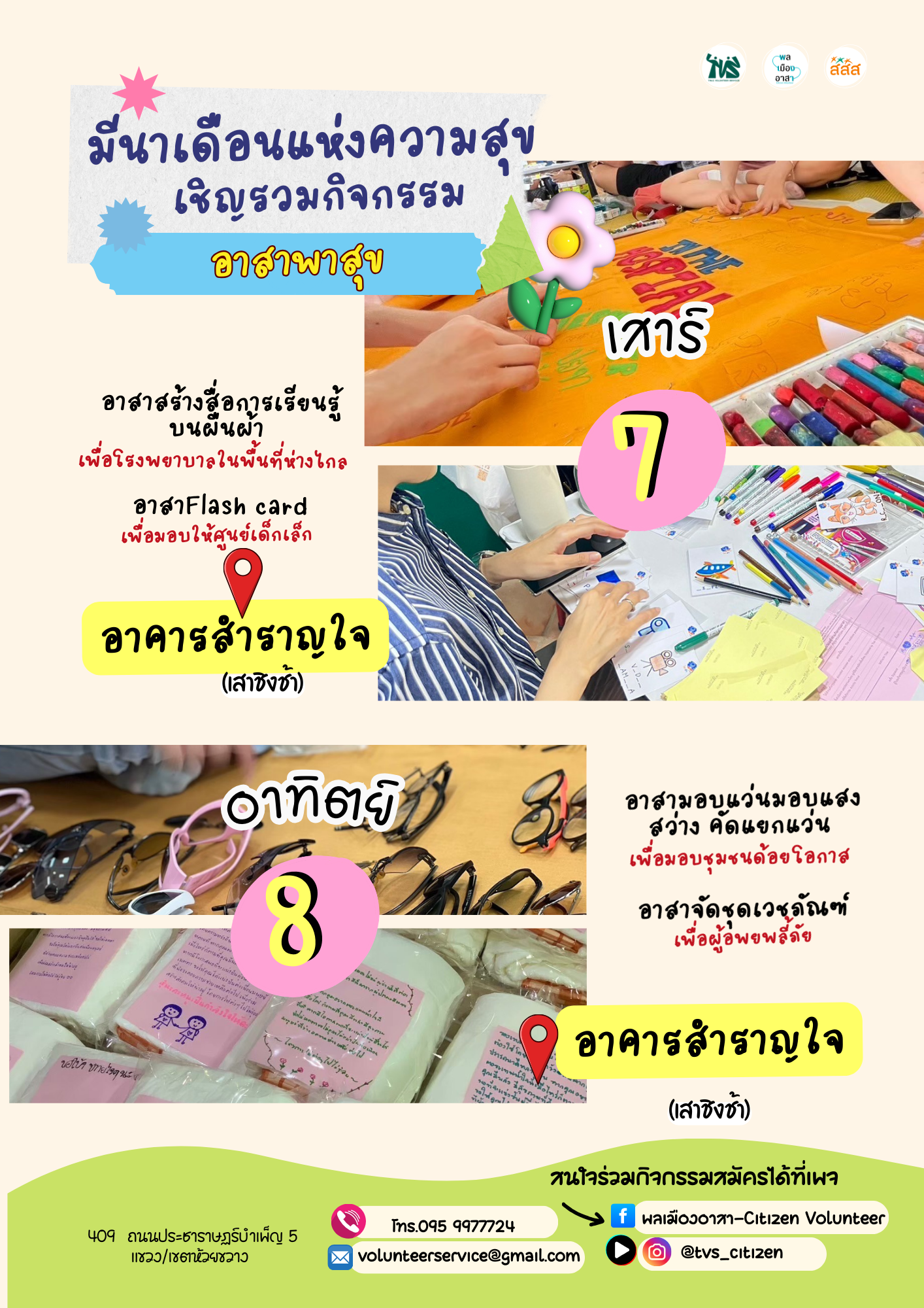 อาสาคัดแยกแว่นตา/อาสาจัดชุดเวชภัณฑ์ 🗓️ 8 มี.ค. 2569 📍อาคารสำราญใจ