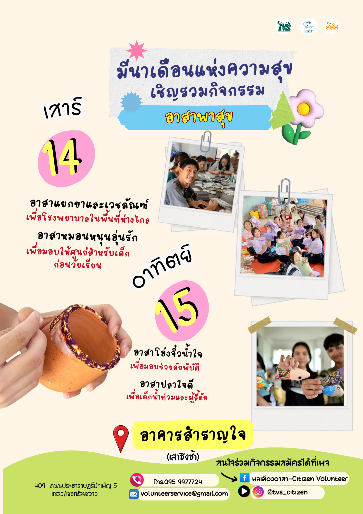 อาสาโอ่งจิ๋วน้ำใจ/อาสาทำปลาใจดี 🗓️ 15 มี.ค. 2569 📍อาคารสำราญใจ