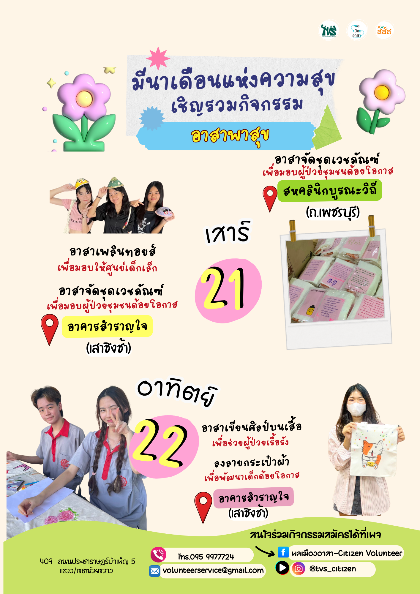 อาสาเพลินทอยส์/อาสาจัดชุดเวชภัณฑ์ 🗓️ 21 มี.ค. 2569 📍อาคารสำราญใจ